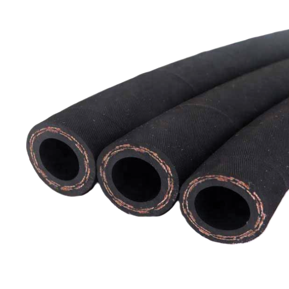This hose shall consist of an inner tube of oil resistant synthetic rubber, two braid of suitable fiber reinforcement, and an oil and weather resistant synthetic rubber cover